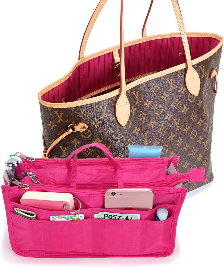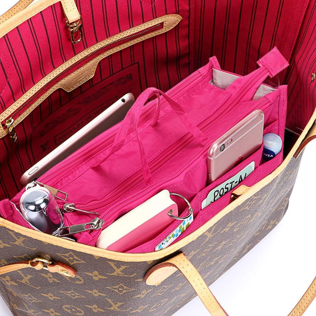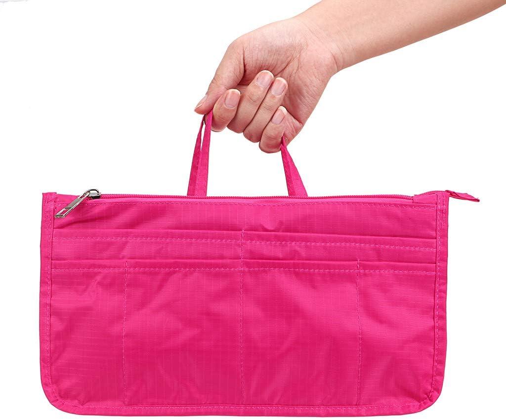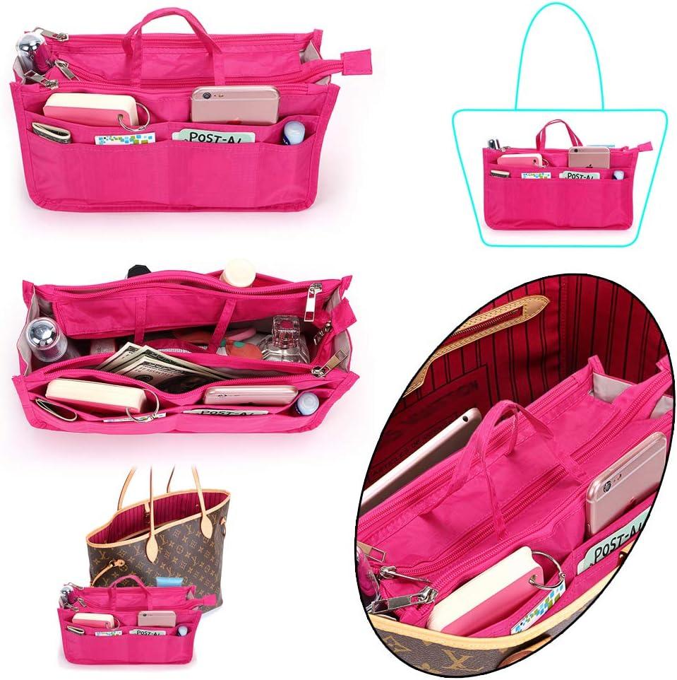BTSKY Printing Handbag Organizers Inside Purse Insert – High Capacity 13 Pockets Bag Tote Organizer with Handle (Rose Red)