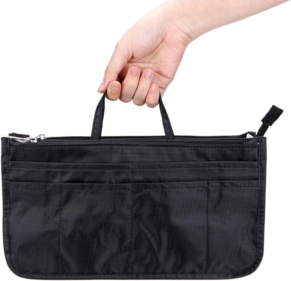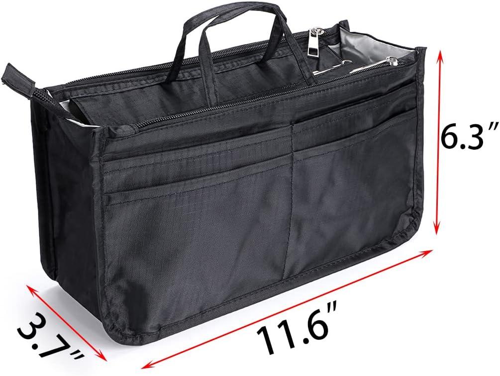 BTSKY Printing Handbag Organizers Inside Purse Insert – High Capacity 13 Pockets Bag Tote Organizer with Handle (Peony)(Black)