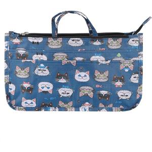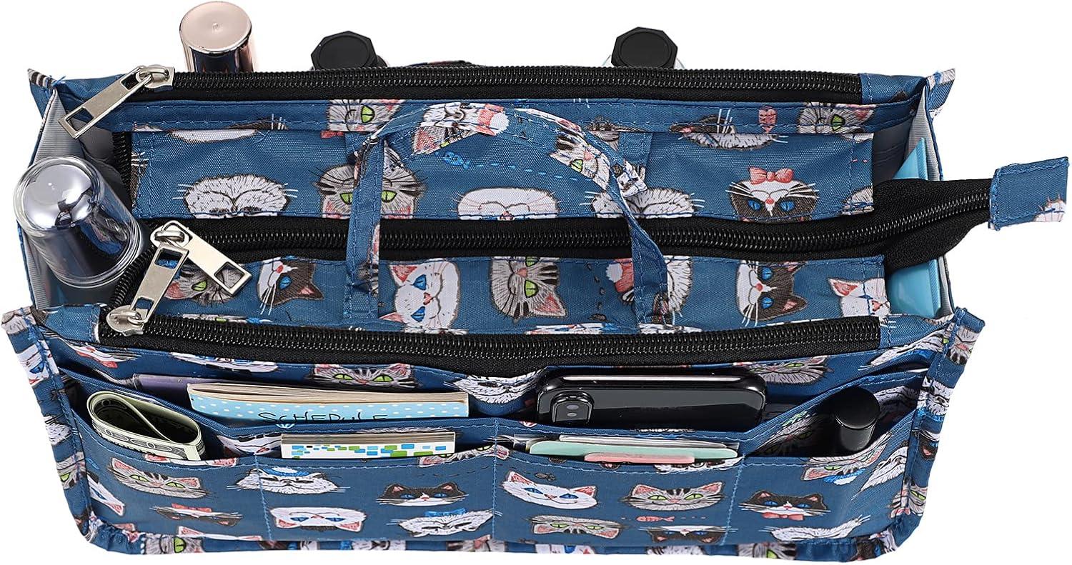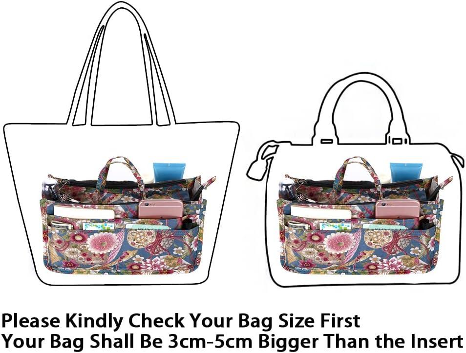 BTSKY Printing Handbag Organizers Inside Purse Insert – High Capacity 13 Pockets Bag Tote Organizer with Handle (Peony)(Dark Blue)