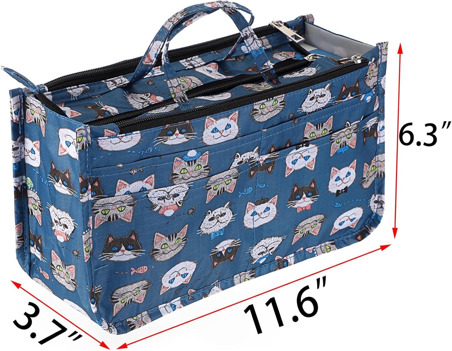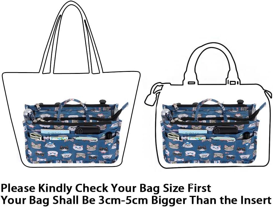 BTSKY Printing Handbag Organizers Inside Purse Insert – High Capacity 13 Pockets Bag Tote Organizer with Handle (Peony)(Blue Heart)