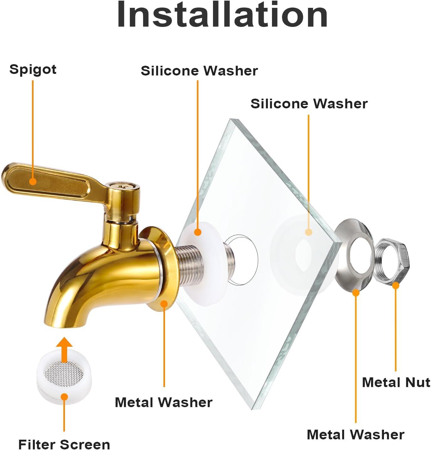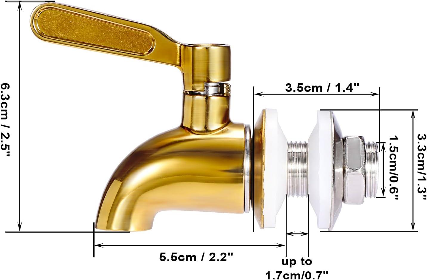 BTSKY™Stainless Steel Beverage Dispenser Replacement Spigot Fits 16mm(5/8 inch)Opening – No Lead Dispenser Replacement Faucet, Polished Finish(Gold)