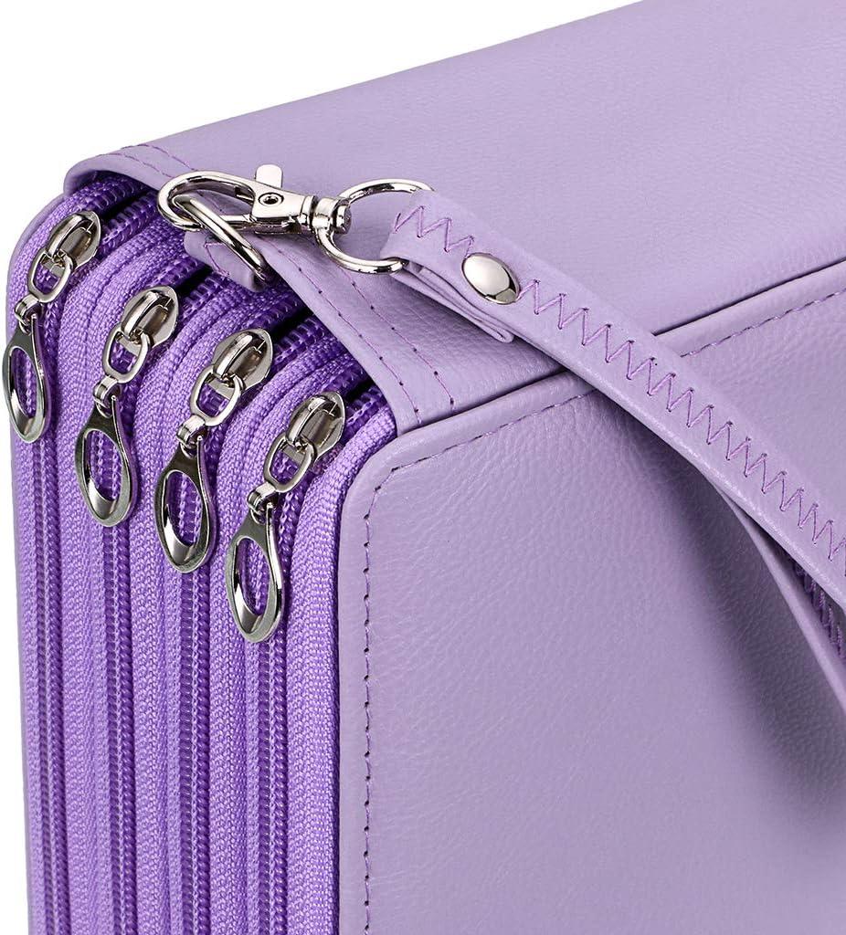 BTSKY 200 Slots Colored Pencil Organizer – Deluxe PU Leather Pencil Case Holder With Removal Handle Strap Pencil Box Large for Colored Pencils Watercolor Pencils Purple