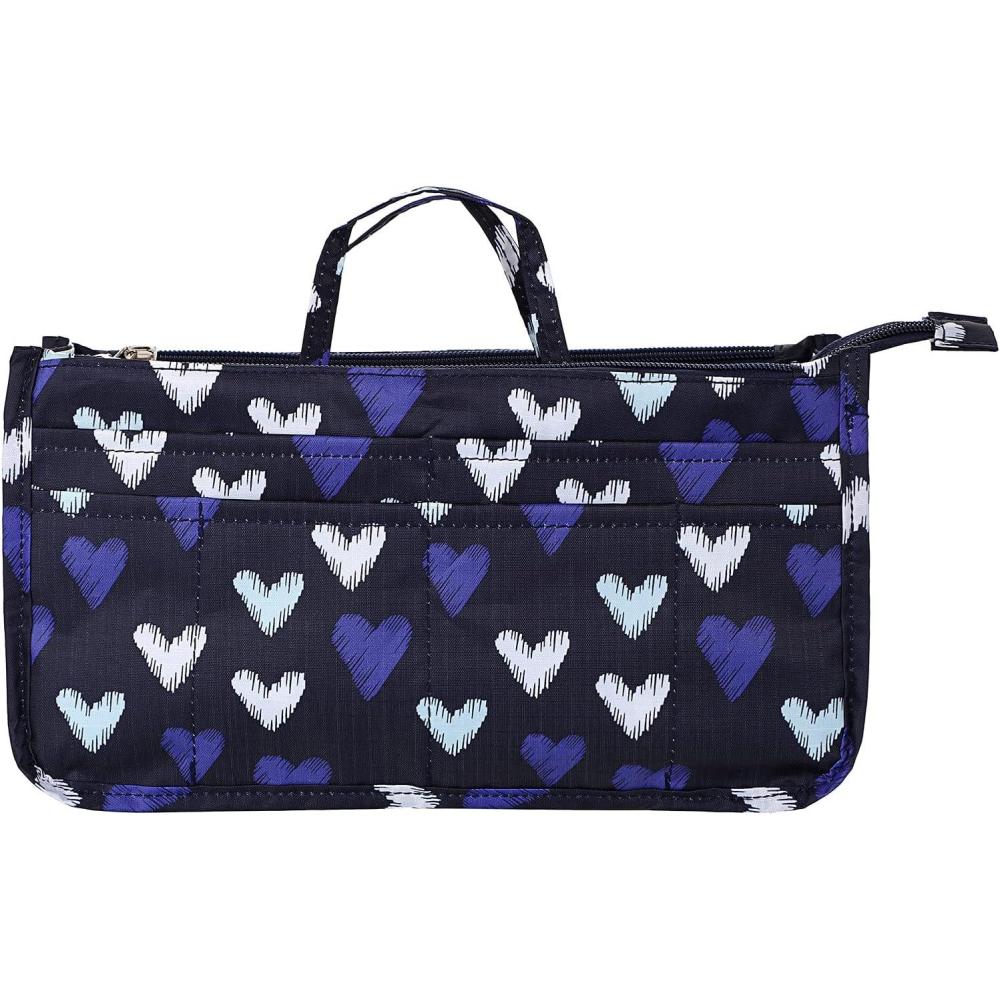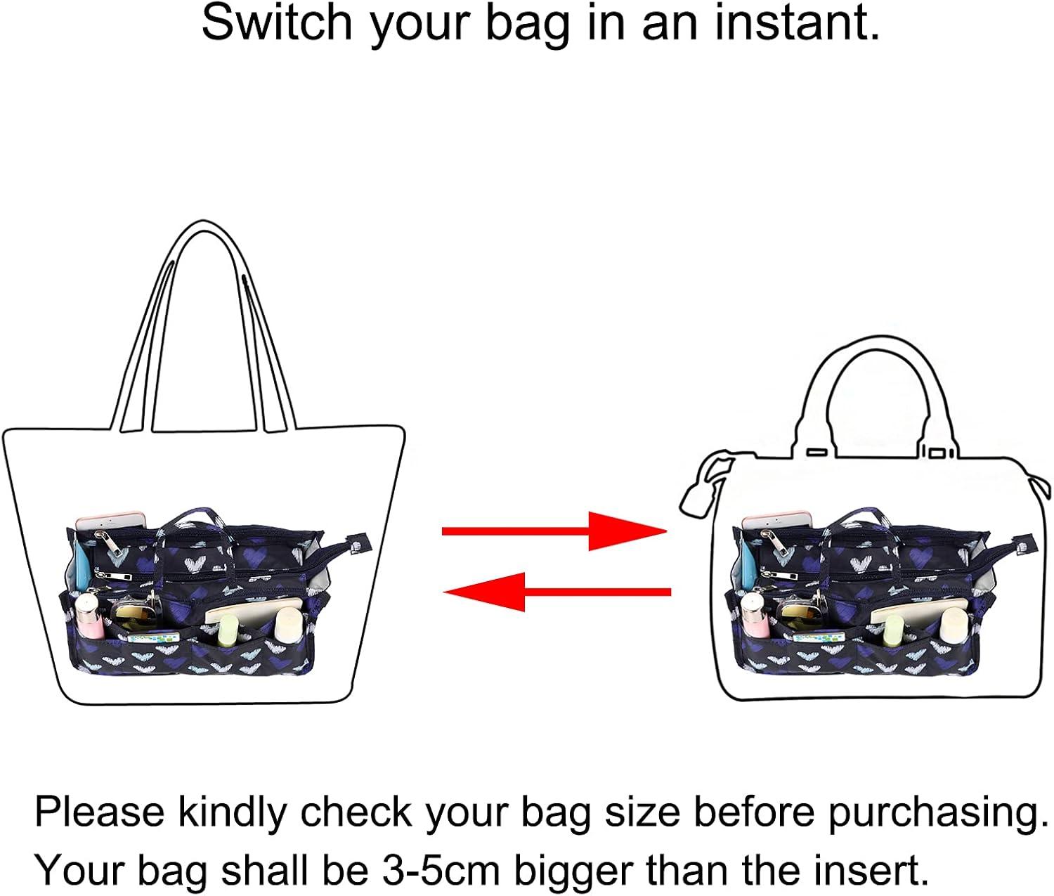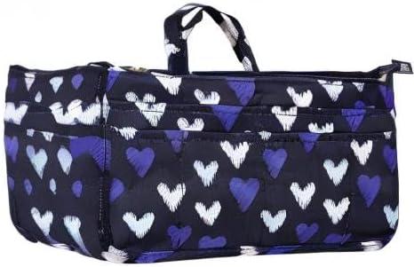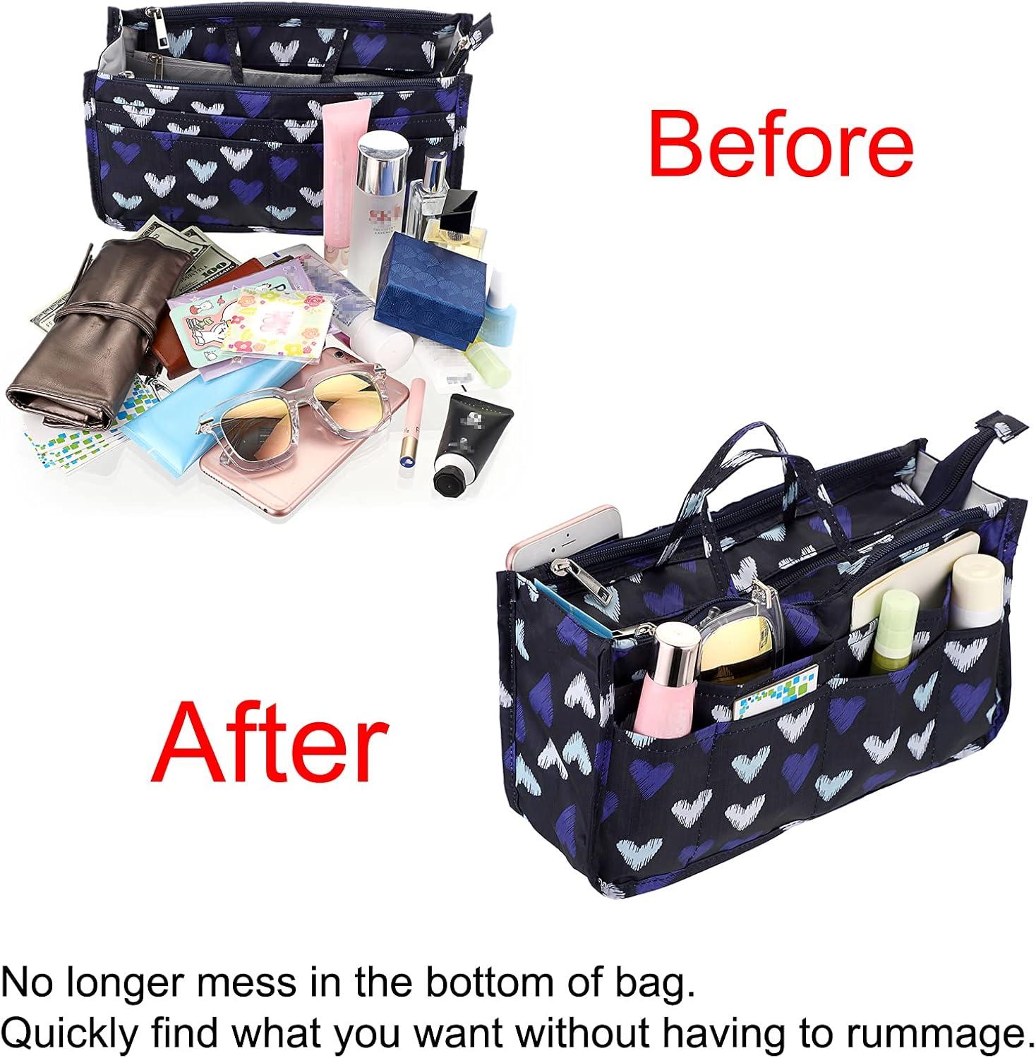 BTSKY Printing Handbag Organizers Inside Purse Insert – High Capacity 13 Pockets Bag Tote Organizer with Handle (Peony)(Blue Heart)